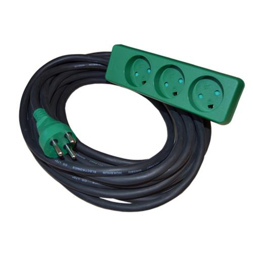 Kabelsæt med hårdfør stik og stikdåse, skråtstillede udtag og super kvalitet gummikabel. H07RN-F 3 x 1,5 mm2 (Læs mere)